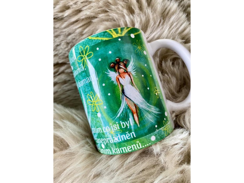 Hrnek s andělským motivem v zářivé zelené barvě přináší pocit klidu, ochrany a naděje. Krásný dárek pro každého, kdo má rád anděly a pozitivní energii.