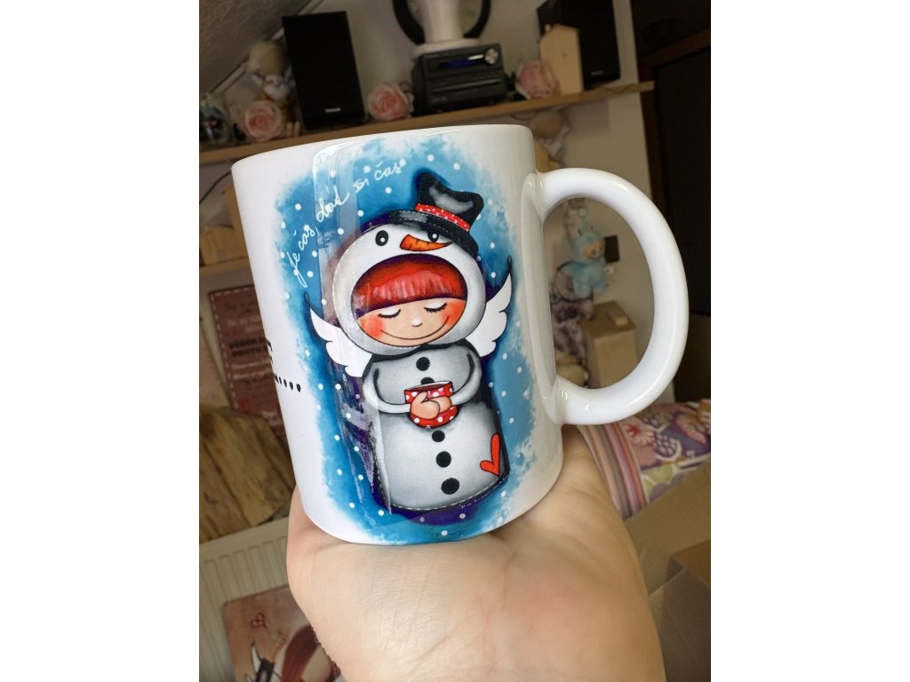Krásný zimní hrnek s originální ilustrací sněhuláčka, který v sobě nese něhu, klid a pocit péče. Detailní motiv s jemnou barevností působí hřejivě a jemně, jako malý zimní talisman pro všední i sváteční dny. Hrnek je kvalitní, pevný, příjemný do ruky a díky odolnému potisku si barvy drží svou krásu i při každodenním používání. Hodí se na čaj, kávu, kakao a jako milý dárek pro někoho, komu chceš říct, že si zaslouží být opečovaný.