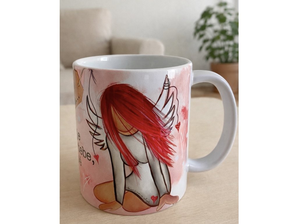 Motivační hrnek s originální andělkou a připomínkou, že svět potřebuje přesně tu verzi tebe, kterou v sobě ukrýváš ....