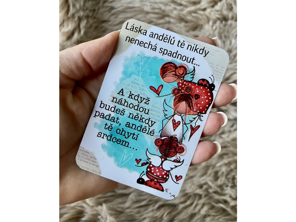 Motiv s poselstvím "Láska andělů tě nikdy nenechá spadnout.." s ilustrací Martiny Maluje, krásný detail i milý dárek..