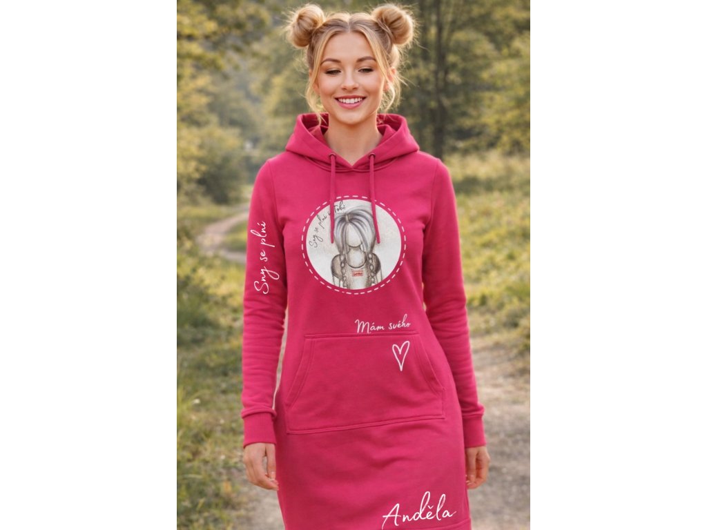 Tato dlouhá dámská mikina s kapucí nese něžnou ilustraci Martiny Maluje, která připomíná, že sny se mohou splnit, pokud si je dovolíme snít. Motiv přináší jemnost, naději a hravý dotek fantazie — ikonické srdíčko jako podpis Martiny dodává mikině osobitý charakter.