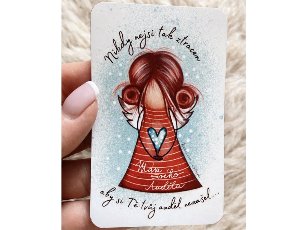 Autorská samolepka nebo magnet „Nikdy nejsi tak ztracen, aby si Tě tvůj anděl nenašel ...“ s jemnou ilustrací Martiny Maluje. Milý doplněk na lednici, auto, zápisník či telefon, který každý den připomene, že každý máme svého anděla.