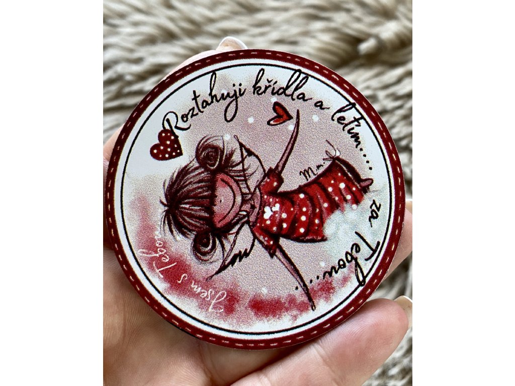Autorská samolepka nebo magnet „Roztahuji křídla a letím za tebou“ s jemnou ilustrací Martiny Maluje. Milý doplněk na lednici, auto, zápisník či telefon, který každý den připomene, že andělé jsou stále s tebou.