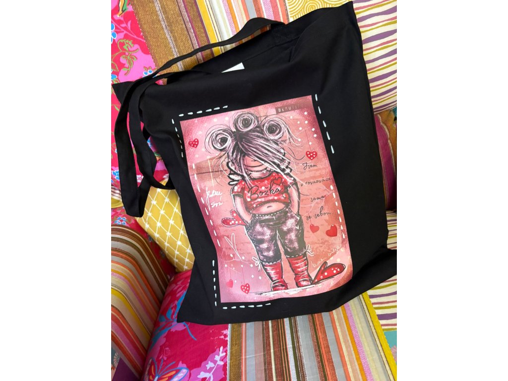 Stylová  taška s originální andělkou Božkou, malou treperendou od Martina maluje. Praktická, lehká a plná radosti – připomíná ti, že jsi svá..