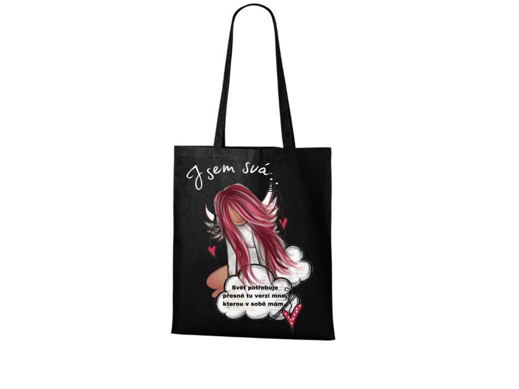 Stylová taška s autorskou ilustrací Martiny Maluje a motivem „Jsem svá“. Lehká, pevná a ideální na nákupy, do práce i jako osobní statement plný sebejistoty.