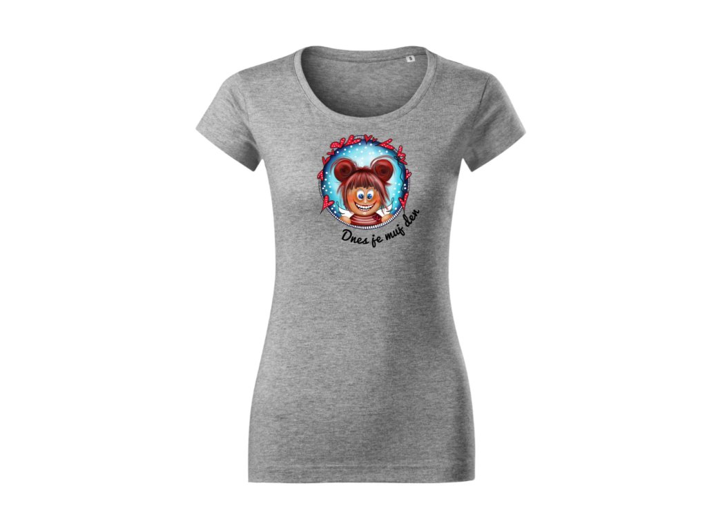 Dámské tričko v šedém melíru s motivem „Dnes je můj den“. Ideální volba, když si chceš svůj den skutečně užít.